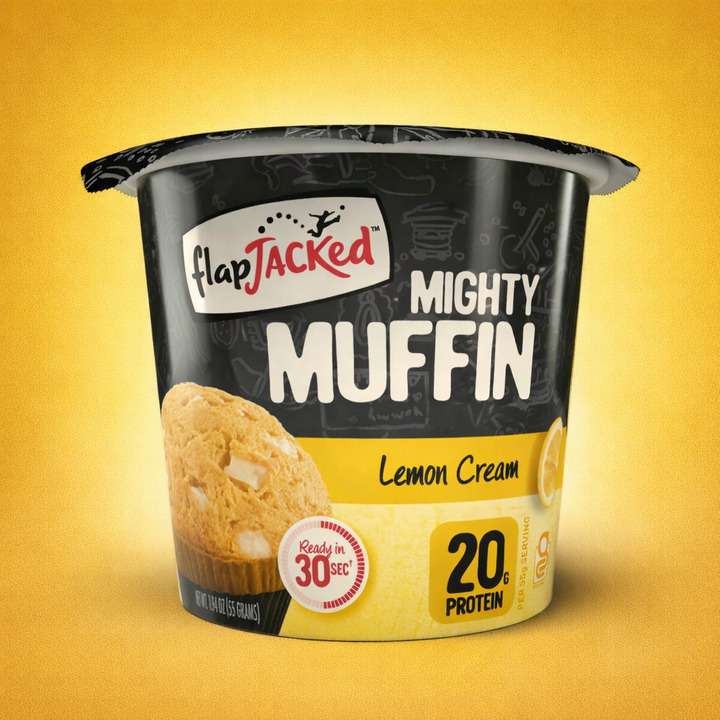 FlapJacked Lemon Cream Mighty Muffins are as fresh and delicious as a warm, spring day. Just like the traditional lemon cream cake, they’re light, moist, and simply bursting with bright lemon flavor. With 20g of protein and 6g of added sugar, you’ll basically have a ray of muffin sunshine in just seconds.